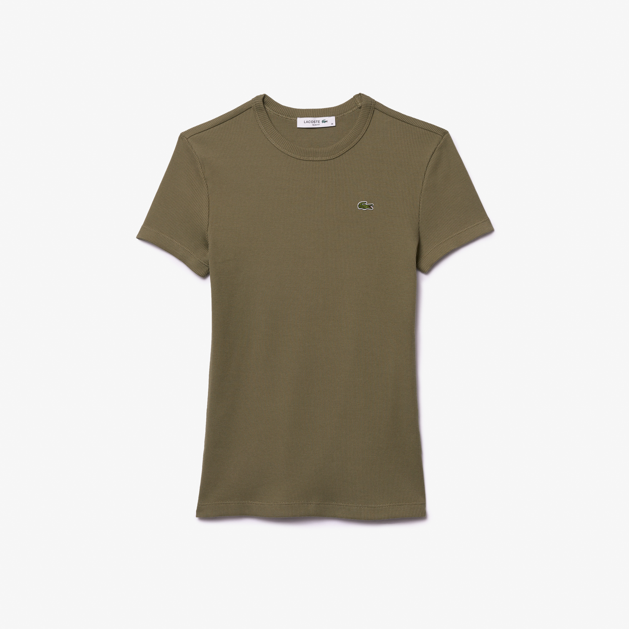 Хлопчатобумажная Футболка в рубчик Slim Fit \ Приталенный крой \ Круглый вырез \ Вышитый логотип \ Трикотажная ткань в рубчик из органического хлопка \ Приталенный крой\круглый вырез\трикотаж в рубчик из органического хлопка\логотип на груди\материал: 10
