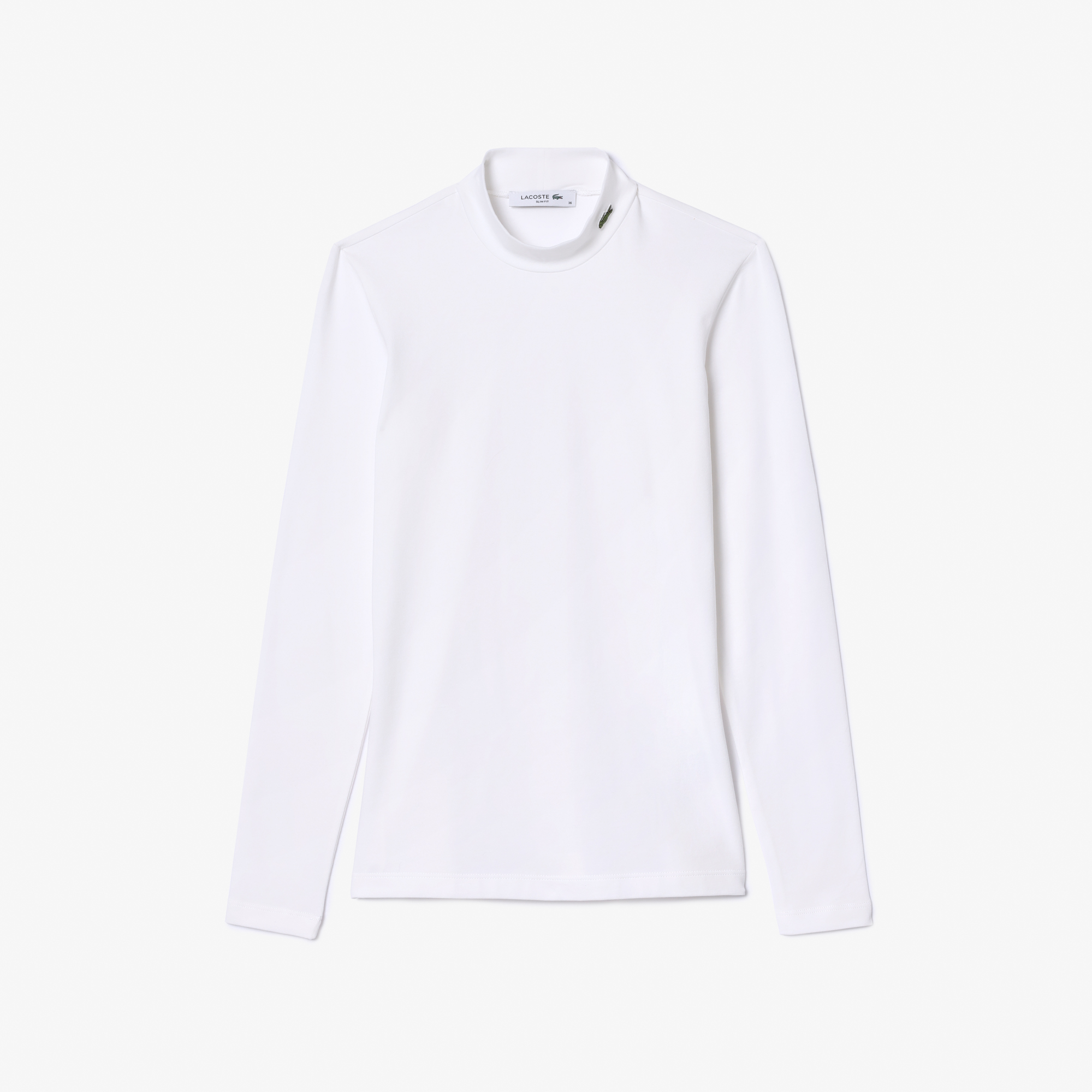 Приталенная Футболка из эластичного хлопка \ Трикотаж из органического хлопка \ Приталенный крой, скорректированный крой \ Высокий вырез для тепла \ Вышитый логотип на груди \ Трикотаж из органического хлопка\приталенный крой\воротник-стойка\длинные рука