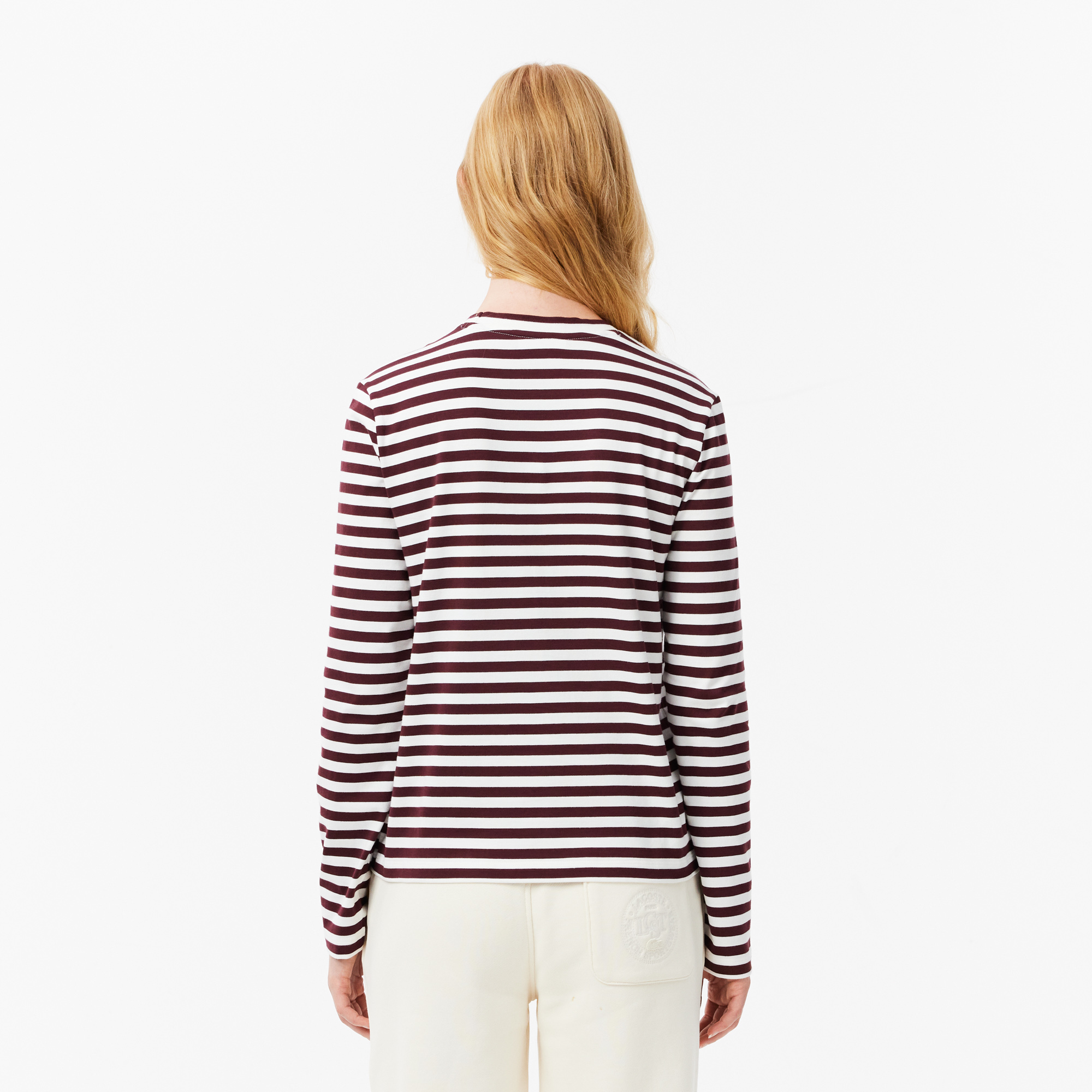 Хлопчатобумажная Футболка в полоску с длинными рукавами \ Хлопчатобумажный трикотаж в полоску \ Обычный прямой крой \ Длинные рукава \ Двухцветный воротник в рубчик \ Вышитый логотип на груди \ Хлопковый трикотаж в полоску\прямой крой\длинные рукава\в по
