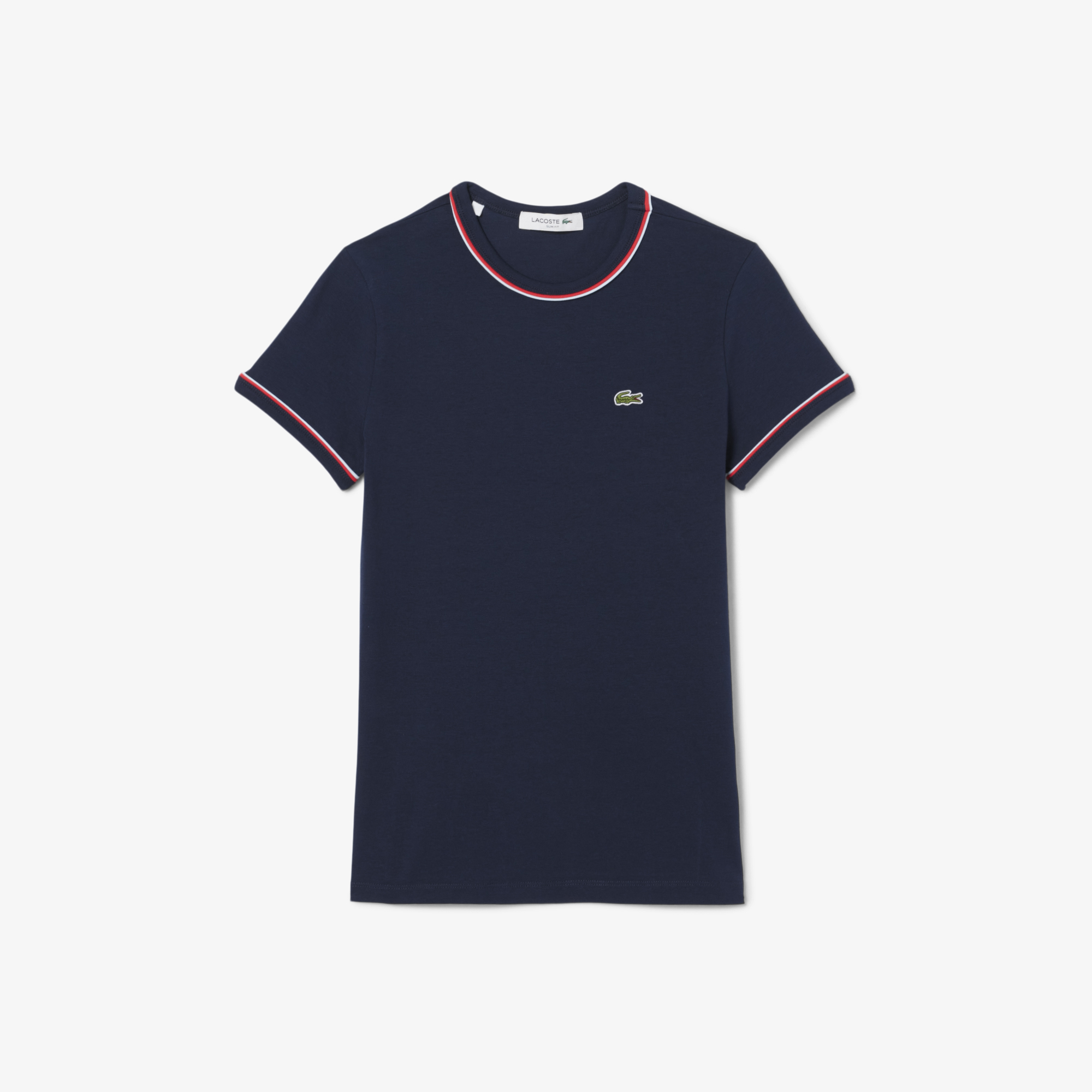 Футболка из хлопка с контрастным акцентом \ Трикотаж из органического мерсеризованного хлопка \ Приталенный крой \ Отделка в рубчик на воротнике и рукавах \ Контрастная отделка воротника и манжет \ Пришитое лого на груди \ Материал: 93% органический хлоп