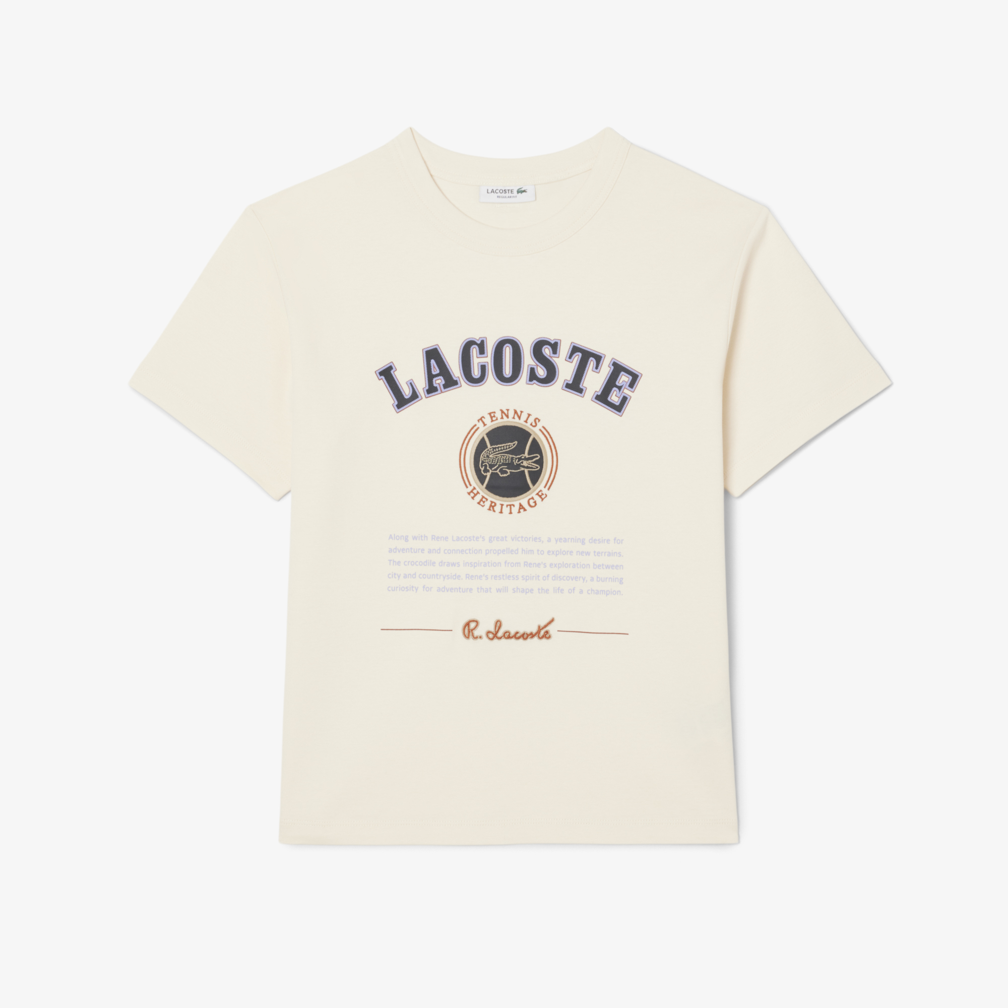 Приталенная Футболка с интерлочным принтом \ Органический хлопковый интерлок \ Приталенный крой \ Воротник в рубчик \ Принт Lacoste спереди \ Вышитый логотип сзади на воротнике\ Материал: 100% органический хлопок