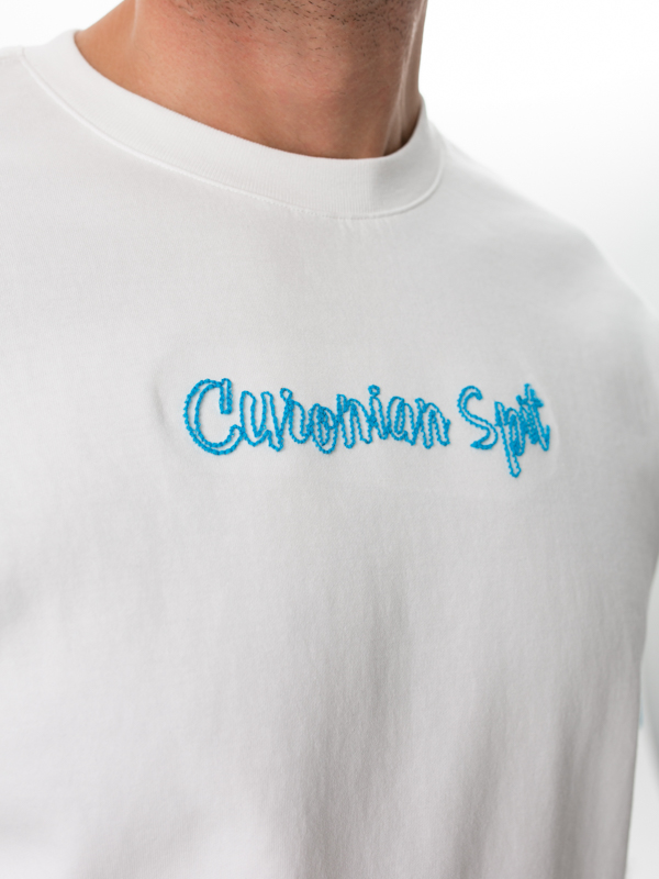 Объёмная вышивка с фирменным логотипом — дизайн, вдохновлённый Куршской косой, символом природной силы и баланса