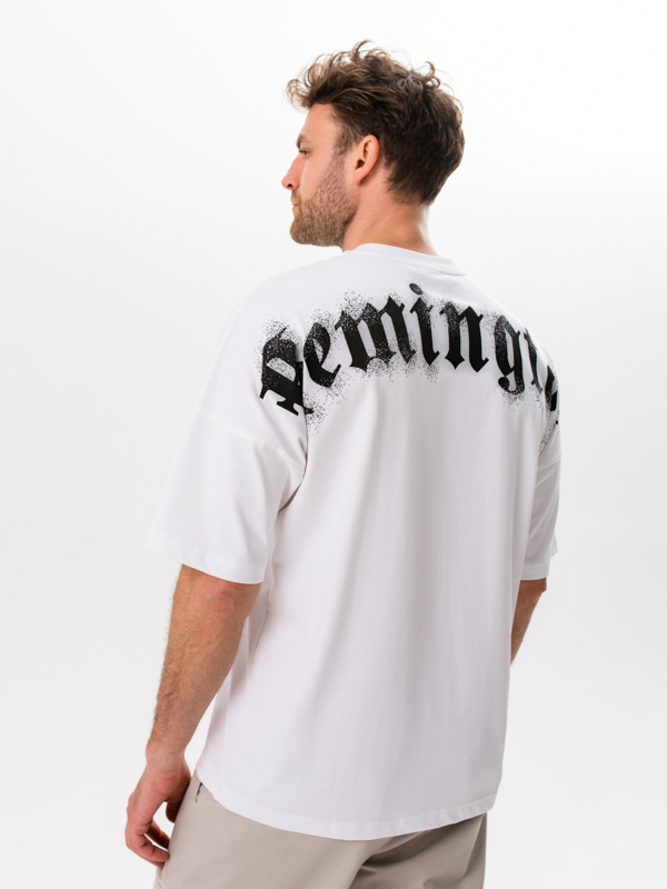 Модель выполнена в актуальном стиле oversize со спущенной линией плеч, что придаёт образу расслабленности и подчёркивает эстетику уличной моды. Белый цвет делает футболку универсальной, а яркий логотип бренда в стиле граффити добавляет индивидуальности и оригинальности.