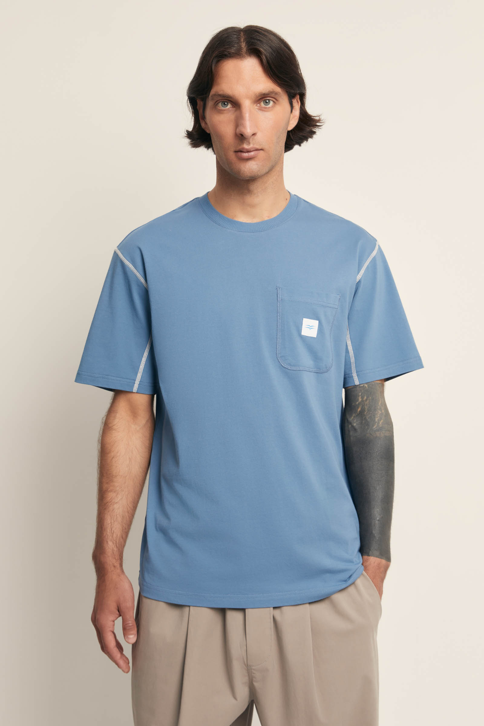 Футболка свободного силуэта с контрастной отделкой