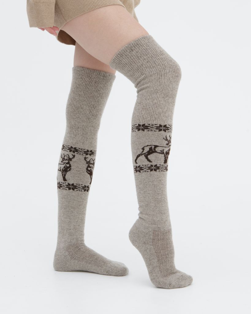 Эти серые чулки из 100% шерсти с изящным рисунком — превосходное решение для тех, кто ценит тепло и стиль. Изготовленные из натуральной шерсти, они дарят комфорт и уют даже в самые холодные дни. Рисунок придаёт чулкам оригинальность, а сдержанный серый оттенок делает их универсальными для любых сочетаний. Эти чулки идеально подойдут для домашнего уюта или для создания интересных повседневных образов, обеспечивая тепло и мягкость при каждом шаге.