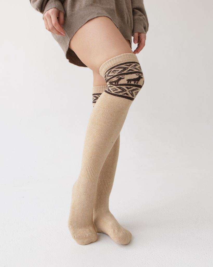 Теплые гольфы из монгольской шерсти в бежевом цвете с оригинальным этническим рисунком созданы для максимального комфорта и тепла в холодное время года. Изготовленные из натуральной шерсти высокого качества, они прекрасно сохраняют тепло, обеспечивая уют и защиту от холода. Мягкий и дышащий материал не раздражает кожу, а эластичная резинка на верхней части надежно удерживает гольфы на ноге, не пережимая и не создавая дискомфорта. Этнический узор придает изделию стильный вид, делая их отличным аксессуаром для создания уютного зимнего образа. Эти гольфы идеально подойдут для повседневной носки или активного отдыха на свежем воздухе.