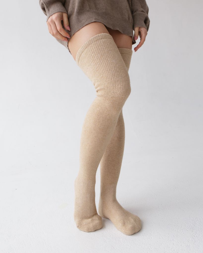 Эти бежевые теплые чулки из монгольской шерсти — отличный выбор для прохладного времени года. Выполненные из натуральной монгольской шерсти, они обеспечивают превосходное тепло и комфорт, мягко облегая ноги и защищая их от холода. Нейтральный бежевый цвет придаёт чулкам универсальность, позволяя сочетать их с различными нарядами. Они станут стильным и уютным дополнением вашего гардероба, создавая ощущение уюта и тепла в любую погоду.