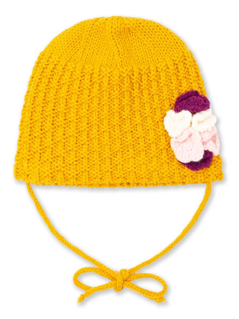 Желтая вязаная шапка для девочки