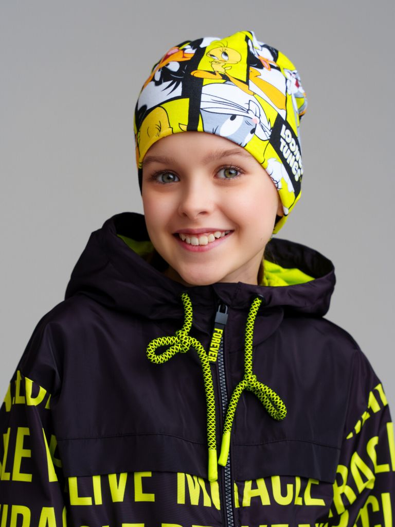 Шапка из качественного и приятного на ощупь трикотажа джерси. Высокое содержание хлопка 95%. Благодаря наличию эластана в составе ткани изделие проще в уходе и держит форму.