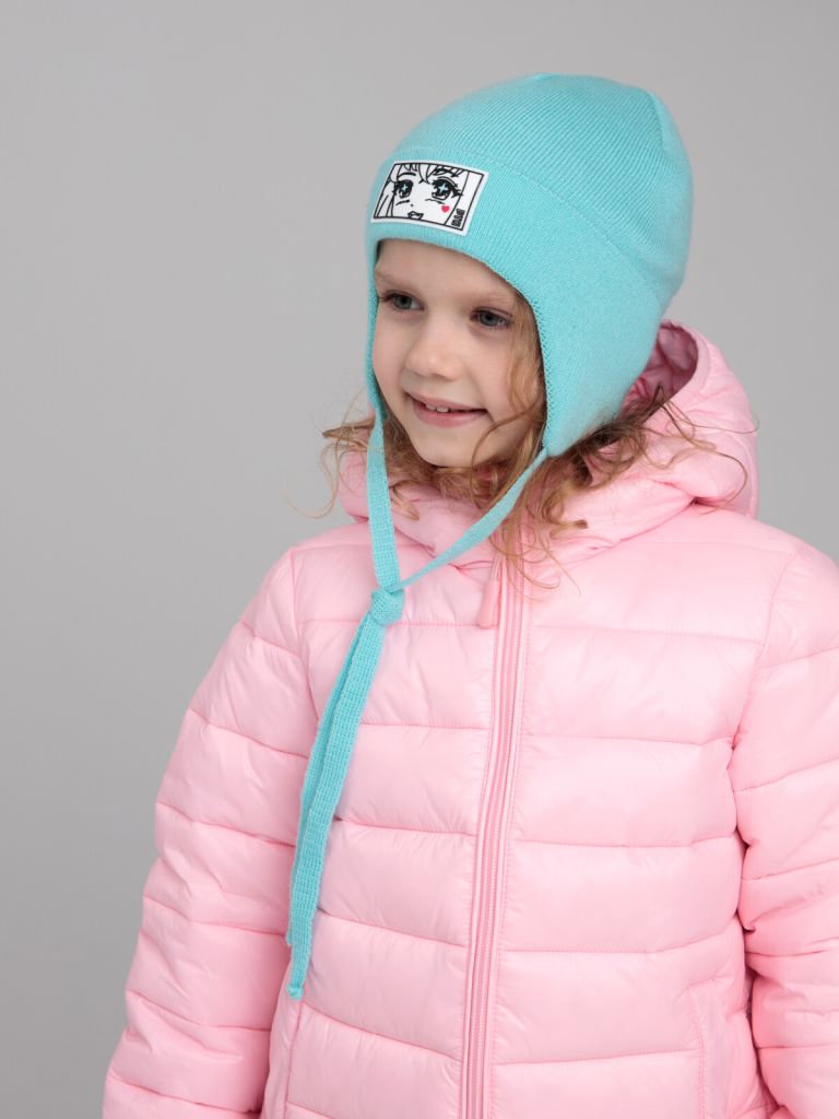 Шапка из вязаного трикотажа. Пряжа из акрила: легкая, теплая, гипоаллергенная. Завязки.