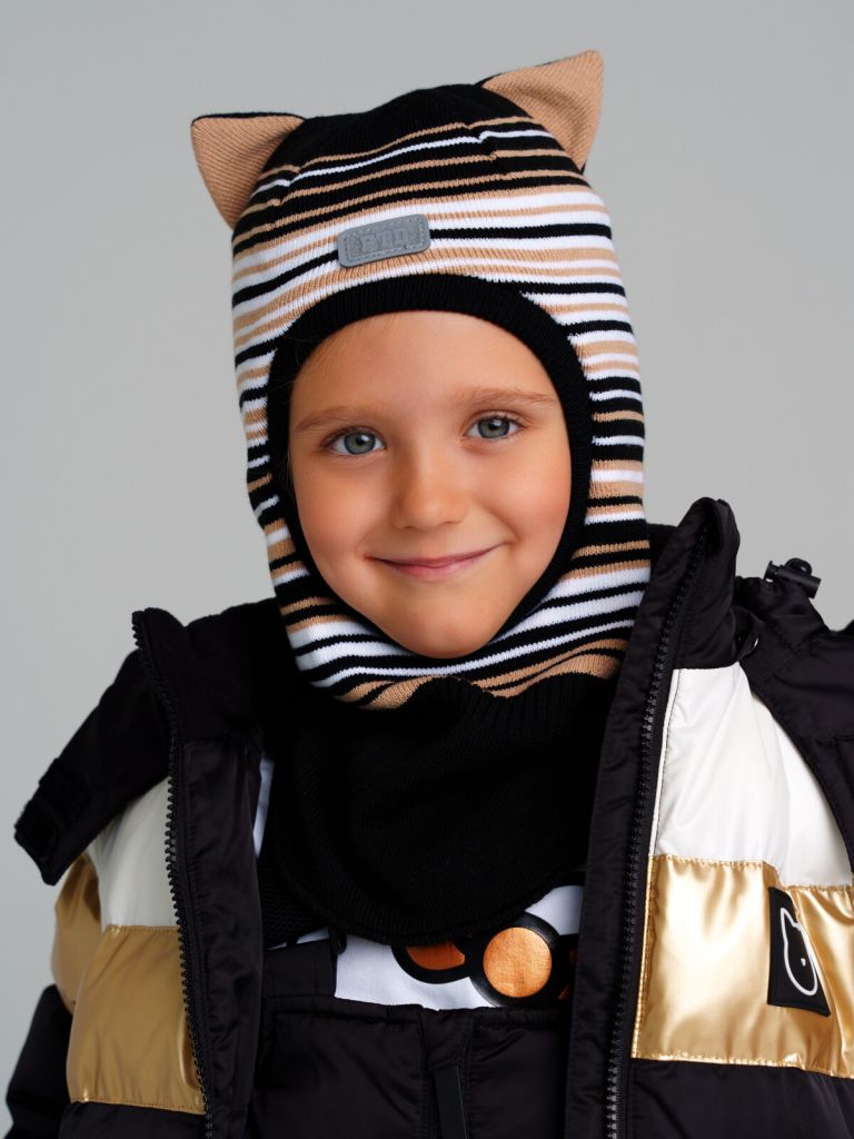 Шапка-шлем из вязаного трикотажа надежно защитит голову и шею ребенка от холода. Пряжа из акрила: легкая, теплая, гипоаллергенная. Шлем утеплен синтепоном. Подкладка из мягкого трикотажа с высоким содержанием хлопка 95%.