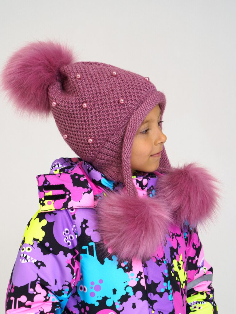 Шапка детская для девочки. Утепленная шапка из вязаного трикотажа отлично подойдет на холодное время года ( сень, зима). Пряжа из акрила: легкая, теплая, гипоаллергенная. Утеплена синтепоном. Дополнительное утепление в области ушей. Подкладка из мягкого трикотажа с высоким содержанием хлопка 95%. Помпон из искусственного меха.