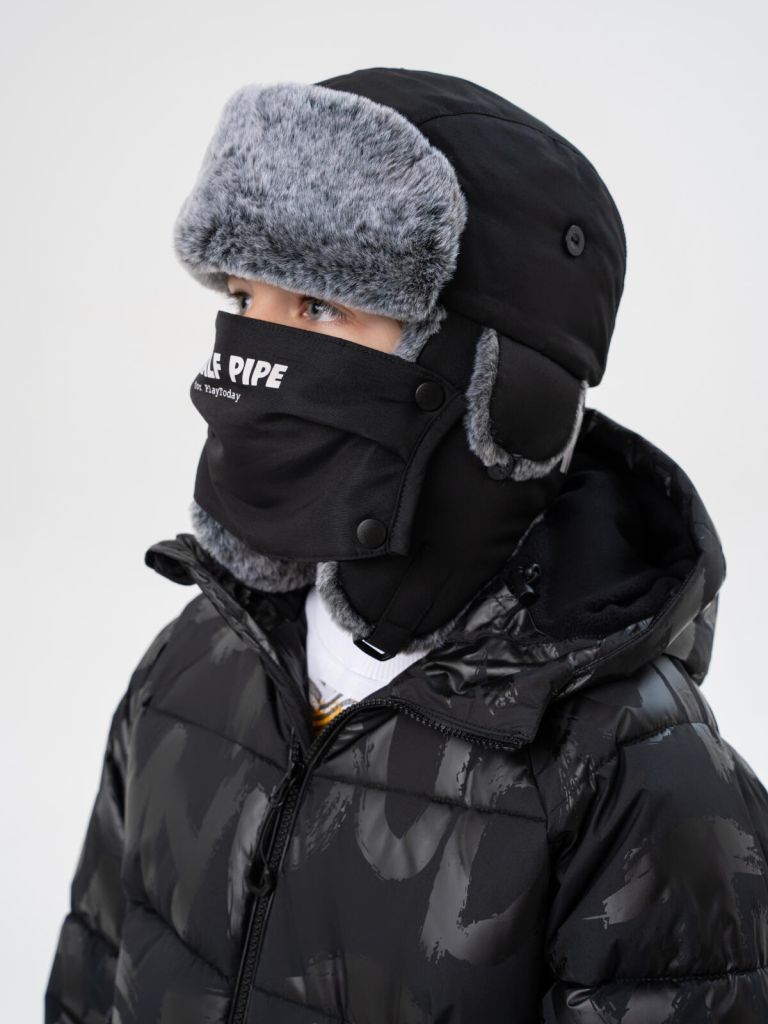 Мех снаружи — шапка для мальчиков выглядит стильно и одновременно надёжно закрывает голову от холода. Универсальный фасон подходит под любые зимние куртки и комбинезоны.