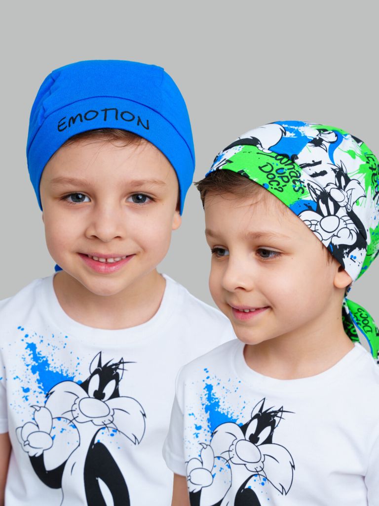 Набор детских бандан для мальчика. Банданы из качественного и приятного на ощупь трикотажа джерси. Модель с высоким содержанием хлопка 95%. Благодаря наличию эластана в составе ткани изделие проще в уходе и держит форму. Завязки.