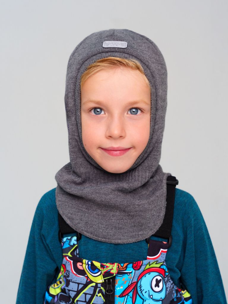Вязаная детская шапка для мальчика. Вязаная шапка-шлем демисезонная из акрила с хлопковой подкладкой. Балаклава идеально подойдет для холодной весны или осени.