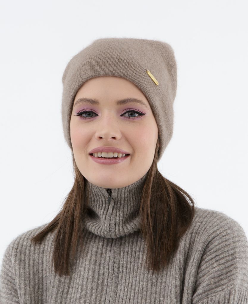 Шапка мягко прилегает к голове, обеспечивая комфортную посадку без давления. Модель можно носить с лёгким напуском или с аккуратным отворотом, открывая контрастный внутренний слой. Универсальный размер подходит большинству типов лица.