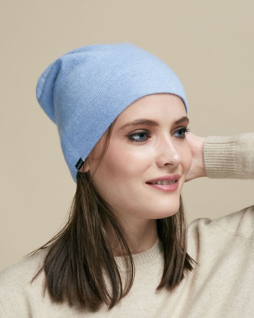 Стильная шапка из 100% кашемира в нежном голубом оттенке — идеальный аксессуар для прохладного сезона. Модель имеет лаконичный дизайн с гладкой фактурой, обеспечивая мягкое и комфортное прилегание. Благодаря натуральному кашемиру шапка лёгкая, дышащая и прекрасно сохраняет тепло, оставаясь при этом нежной на ощупь. Универсальный цвет легко сочетается с верхней одеждой разных оттенков, добавляя образу свежести и элегантности.