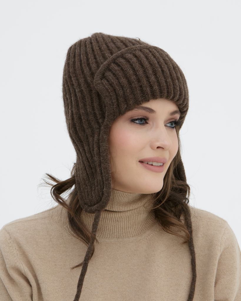 Коричневая ушанка 3875 — уютный и стильный аксессуар для холодного сезона. Фактурная вертикальная вязка придаёт модели выразительность и подчёркивает её современный характер. Классический силуэт с ушками надёжно защищает от ветра и мороза, создавая ощущение тепла и комфорта. Универсальный дизайн легко вписывается в повседневные зимние образы в натуральной палитре.