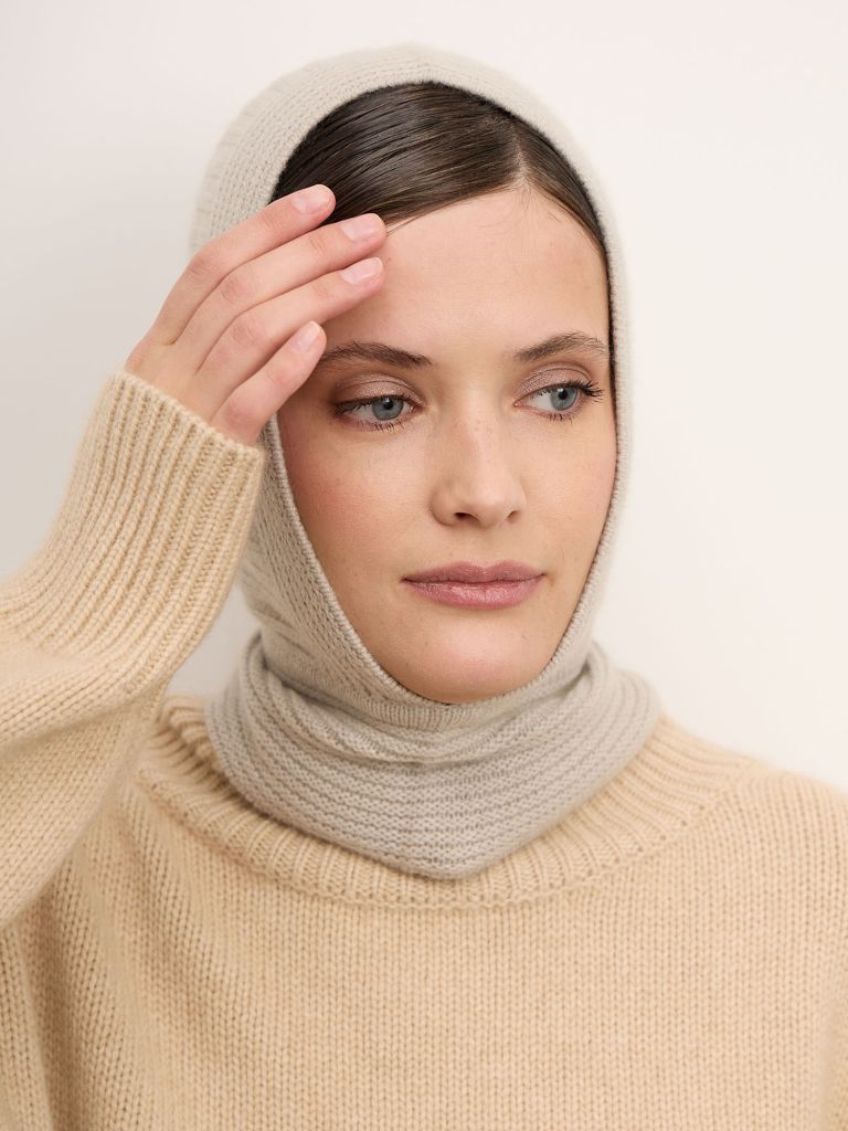 Кашемировая балаклава в серебристом оттенке — это сочетание изысканной простоты и функционального тепла. Нежно окутывая голову и шею, она создает ощущение «второй кожи» и защищает от ветра и холода без утяжеления. Легкая, мягкая и пластичная, балаклава идеально подходит для городской зимы, путешествий и повседневных образов в стиле smart casual. Это не просто аксессуар, а инвестиция в комфорт на долгие годы.Материал:100% натуральный кашемир. Тонкое и мягкое волокно отличается высокой терморегуляцией — сохраняет тепло на улице и позволяет коже дышать в помещении. Гипоаллергенный материал деликатно соприкасается с кожей, не вызывая раздражения. При правильном уходе кашемир сохраняет форму, мягкость и презентабельный внешний вид на протяжении многих сезонов.Дизайн:Минималистичный крой без лишних деталей. Эластичная вязка обеспечивает аккуратное прилегание и комфортную посадку. Универсальная конструкция позволяет носить изделие как балаклаву, капор или снуд, создавая разные варианты стилизации. Лаконичная форма подчеркивает фактуру благородного кашемира.Цвет:Серебристый — светлый, утонченный оттенок с мягким холодным подтоном. Освежает образ, гармонично сочетается с бежевой, серой, молочной и черной верхней одеждой, подчеркивая элегантность и чистоту линии.Посадка:Комфортная, анатомически адаптирующаяся к форме головы. Мягко фиксируется без давления и не деформирует прическу. Универсальный размер благодаря эластичной структуре вязки.Уход:Рекомендуется деликатная ручная стирка в холодной воде со специальным средством для шерсти и кашемира. Не выкручивать. Сушить в горизонтальном положении вдали от прямых солнечных лучей и отопительных приборов. Хранить в сложенном виде для сохранения формы.