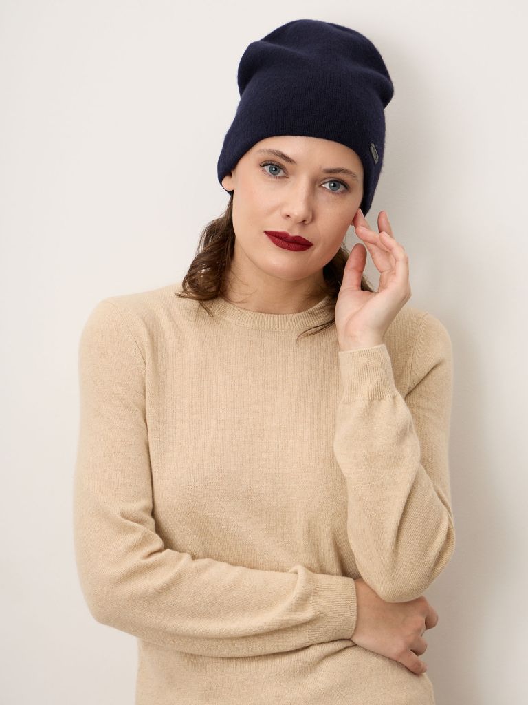 Темно-синяя шапка из монгольского кашемира — это сочетание лаконичного дизайна, премиального качества и абсолютного комфорта. Мягкая, невесомая и при этом по-настоящему теплая, она деликатно облегает голову, создавая ощущение «второй кожи». Глубокий синий оттенок подчеркивает статус и легко вписывается в любой гардероб — от классического пальто до объемного пуховика.