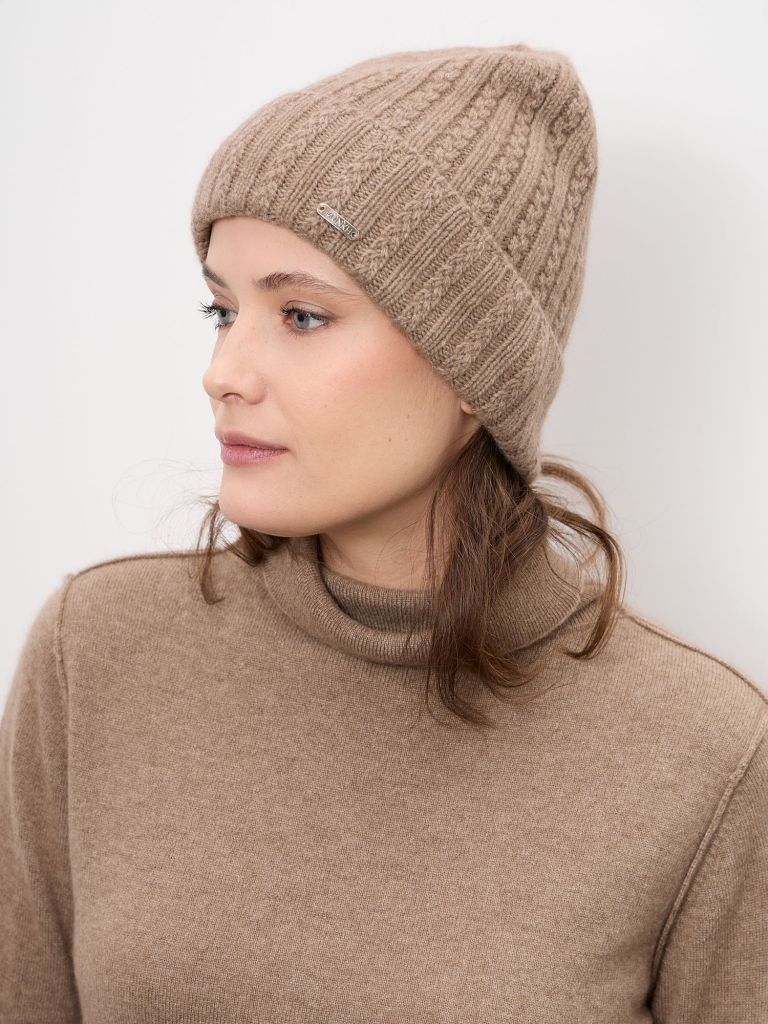 Элегантная кашемировая шапка классической формы с выразительной фактурной вязкой. Модель аккуратно облегает голову, сохраняя тепло и комфорт, и при этом выглядит утончённо и современно. Универсальный оттенок капучино легко сочетается с базовым гардеробом и верхней одеждой в нейтральной палитре.Материал:100% натуральный кашемир. Пряжа отличается исключительной мягкостью, лёгкостью и высокими теплоизоляционными свойствами, не раздражает кожу и подходит для чувствительного типа кожи.Посадка:Однослойная вязка с эластичным отворотом обеспечивает комфортную посадку без давления. Шапка хорошо держит форму и подходит для повседневной носки в холодное время года.Детали:Фактурный узор придаёт модели объём и визуальную глубину. Минималистичный фирменный металлический логотип подчёркивает премиальный характер изделия.Сезонность:Осень, зима, прохладная весна.Уход:Рекомендуется ручная стирка в холодной воде с использованием средств для деликатных тканей или кашемира. Не выкручивать, сушить в горизонтальном положении, избегать трения и хранения на вешалке.Готовую памятку по уходу вы можете прочитать у нас в блоге.