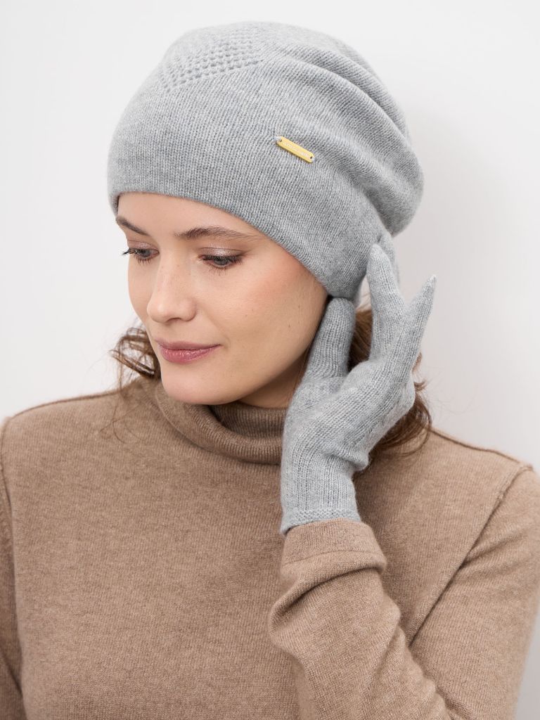 Двойная кашемировая шапка с декоративным узором — изысканный аксессуар для холодного сезона. Мягкая, пластичная форма красиво садится по голове, создавая аккуратный и благородный силуэт. Серо-голубой оттенок универсален и легко сочетается с базовым и классическим гардеробом.Материал:Натуральный кашемир премиального качества. Волокно отличается исключительной мягкостью, легкостью и способностью сохранять тепло без утяжеления.Конструкция:Двойное полотно обеспечивает дополнительную защиту от холода и ветра. Вязаный узор добавляет фактурность и визуальную глубину, сохраняя при этом лаконичный внешний вид.Посадка и комфорт:Шапка эластична, хорошо адаптируется к форме головы, не сдавливает и подходит для длительного ношения. Комфортна как для прогулок, так и для повседневного городского образа.Стиль:Элегантный минимализм с акцентом на текстуру. Подходит к пальто, пуховикам, кашемировым свитерам и водолазкам. Уместна в повседневных и более собранных образах.Уход:Рекомендуется бережная ручная стирка в прохладной воде с использованием средства для кашемира. Не выкручивать, сушить в горизонтальном положении вдали от источников тепла.Готовую памятку по уходу вы можете прочитать у нас в блоге.