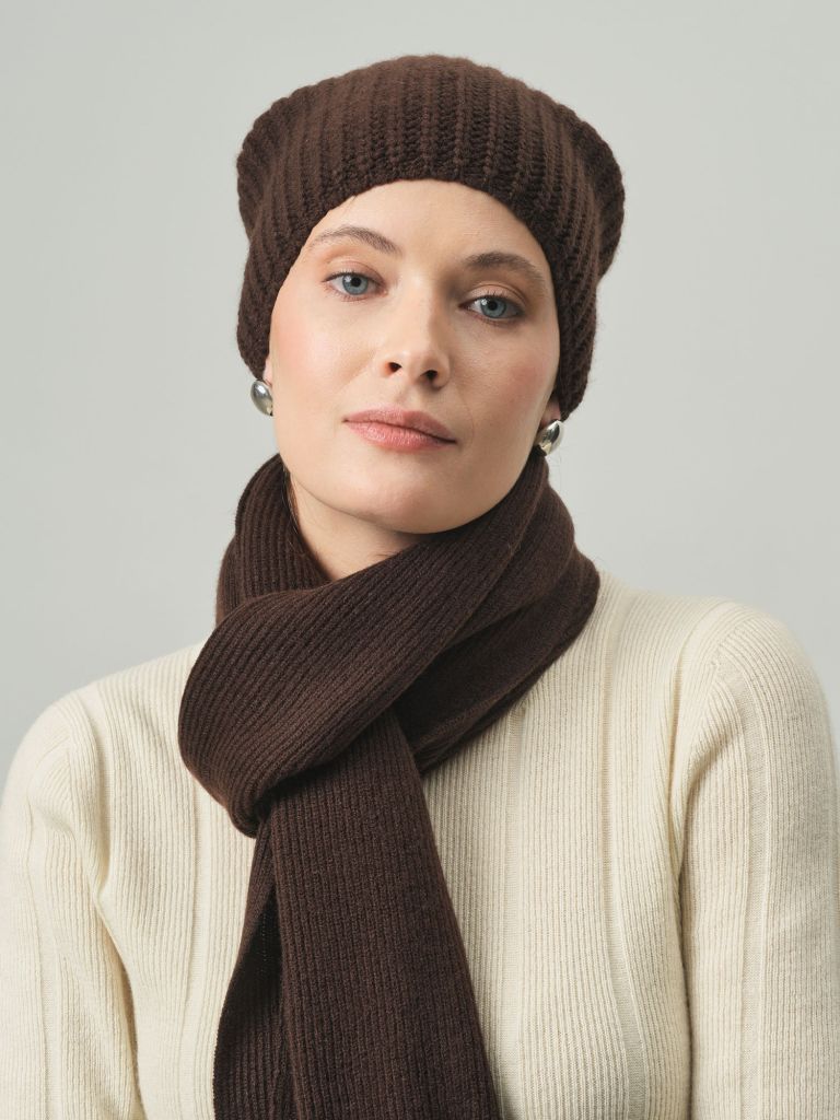 Лаконичная и элегантная шапка из натурального кашемира, созданная для комфорта в холодное время года. Модель мягко облегает голову, сохраняет тепло и дополняет как повседневные, так и более утончённые образы.