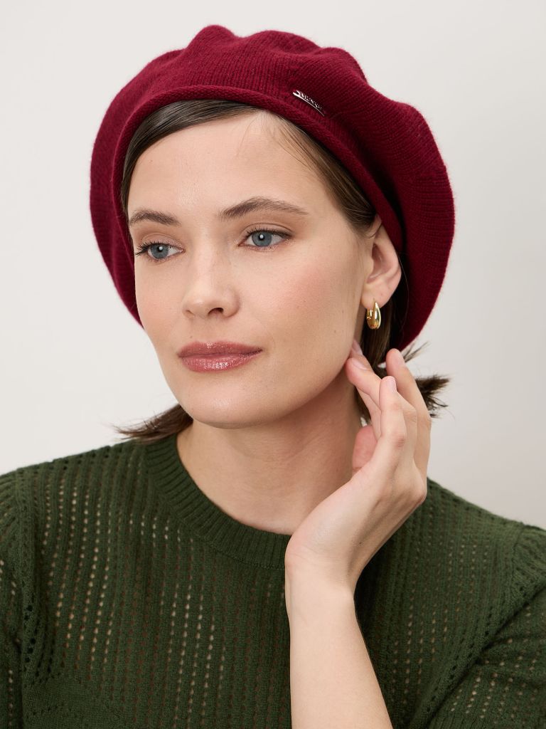 Бордовый берет из кашемира 04006 — это выразительный акцент, который добавляет глубину образу. Он мягко садится, держит форму без жёсткости и создаёт ощущение уюта. Цвет работает как акцент, но остаётся спокойным и благородным.