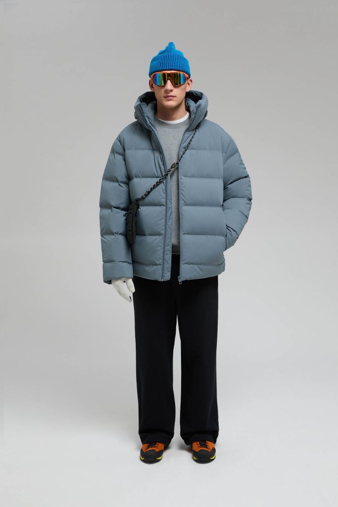 Пуховик с воротником-стойкой и капюшоном