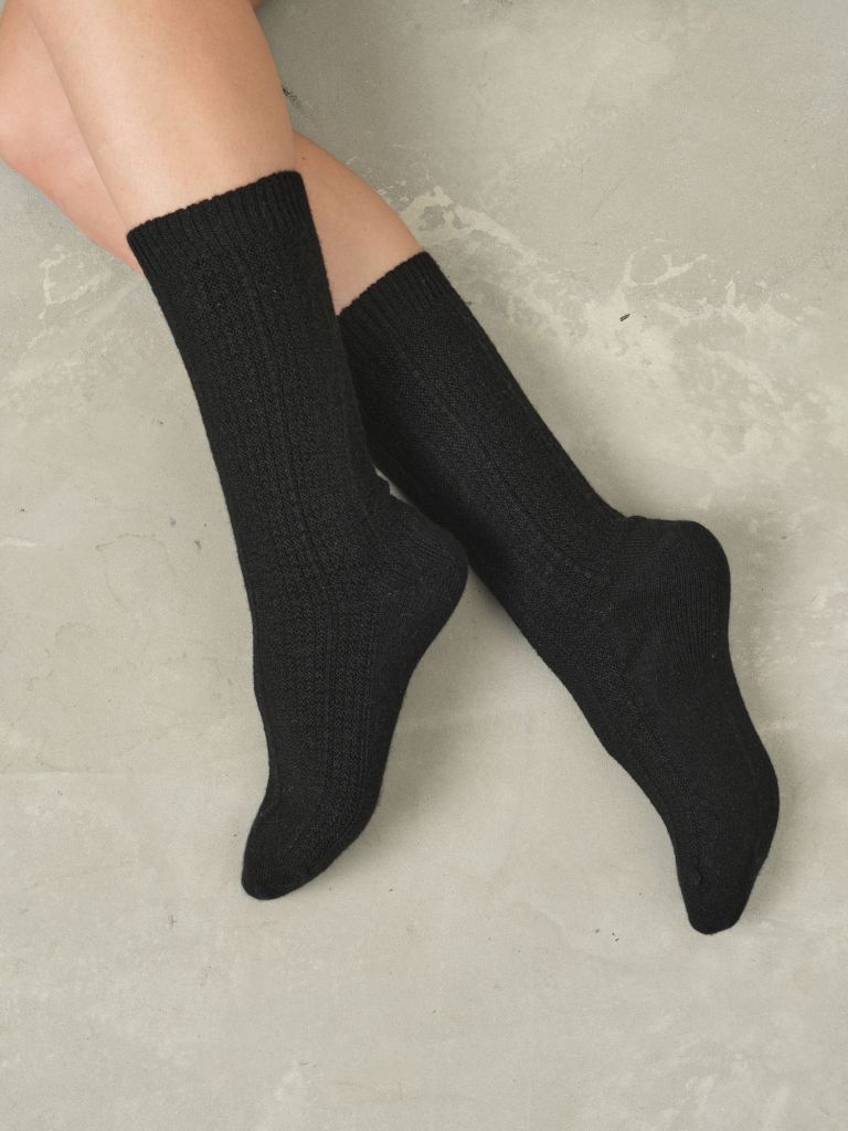 Лаконичный однотонный дизайн в черном цвете с аккуратной вязкой и эластичной манжетой для комфортной посадки без сдавливания.