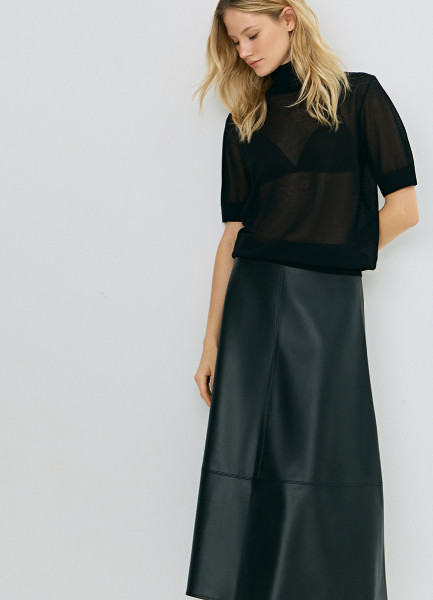 Юбка миди А-силуэта из искусственной кожи, Черный