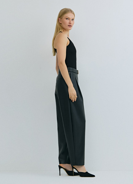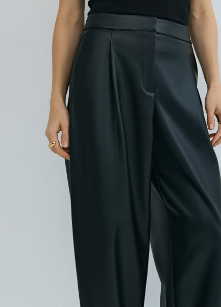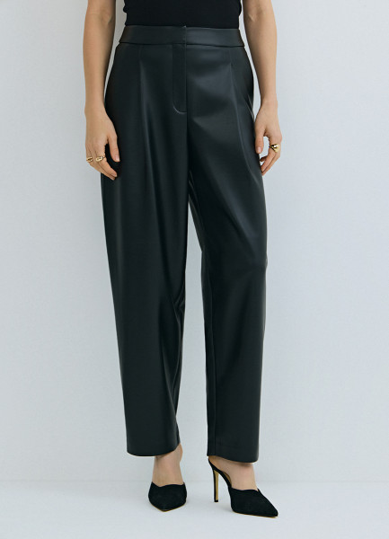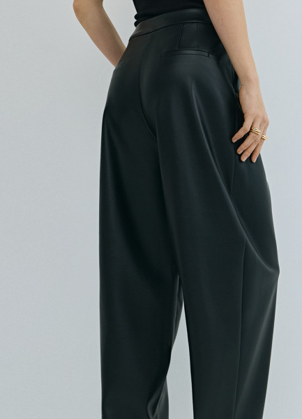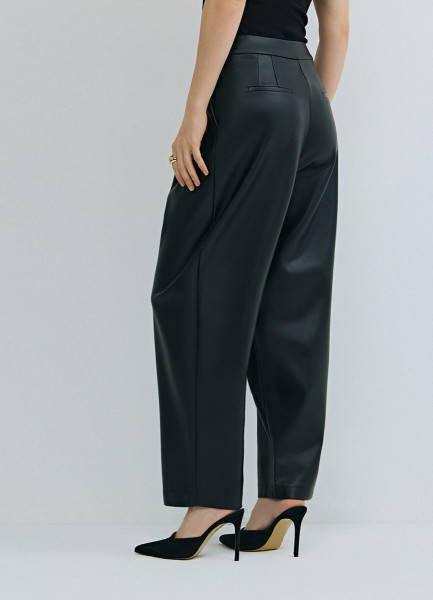 Брюки О-силуэта из искусственной кожи, Черный