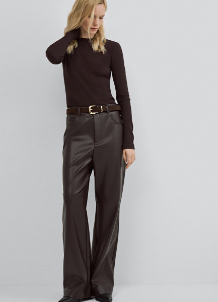 Прямые брюки из искусственной кожи, Коричневый