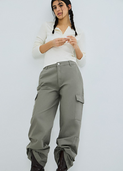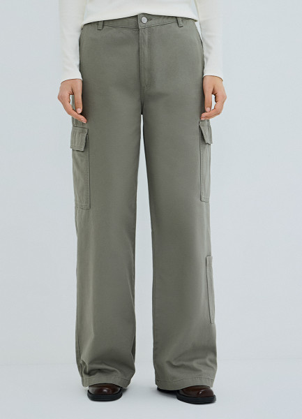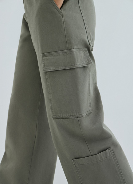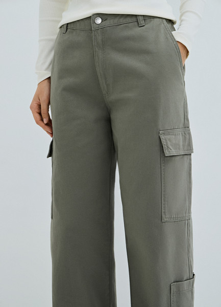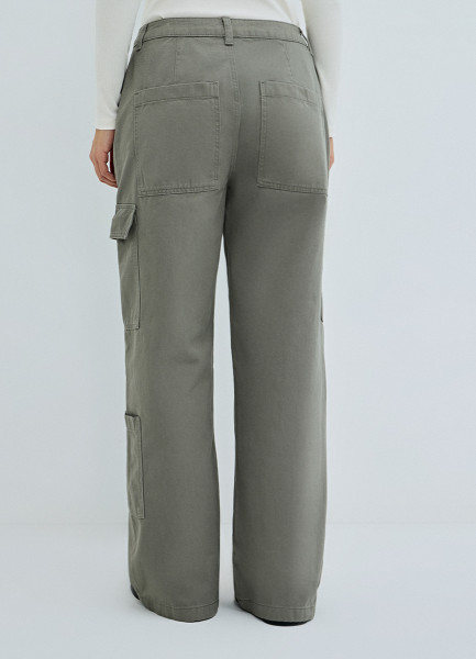 Хлопковые брюки карго с накладными карманами, Зеленый