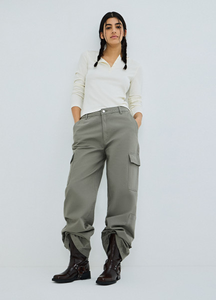Хлопковые брюки карго с накладными карманами, Бежевый