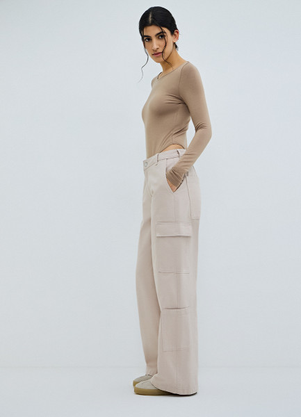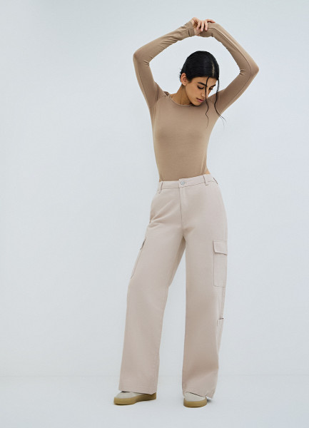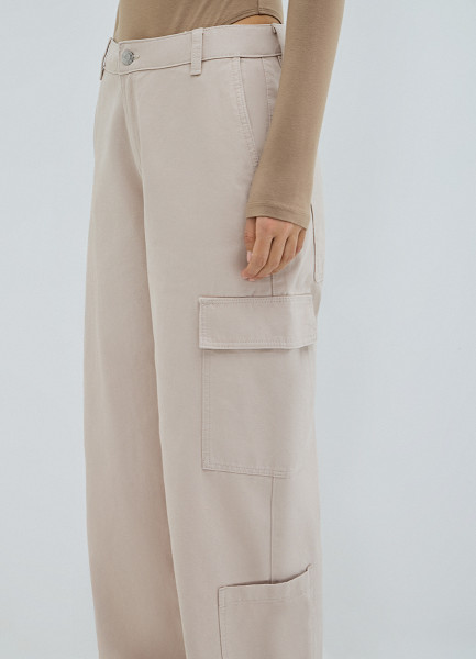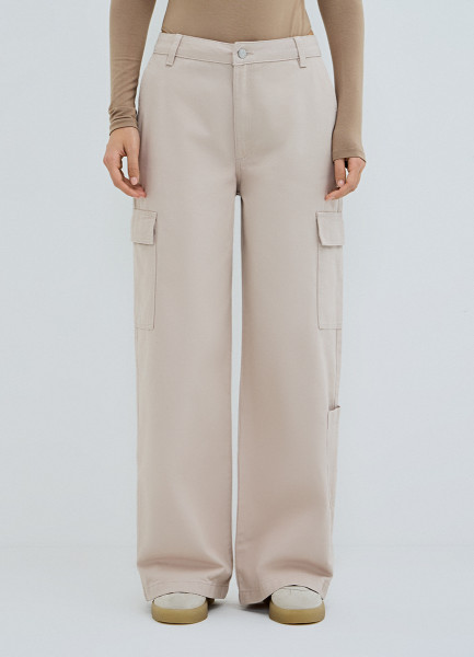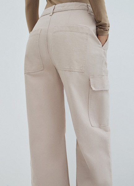 Хлопковые брюки карго с накладными карманами, Бежевый