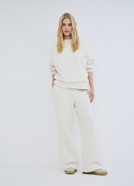 Базовые широкие брюки с эффектом стирки, Бежевый