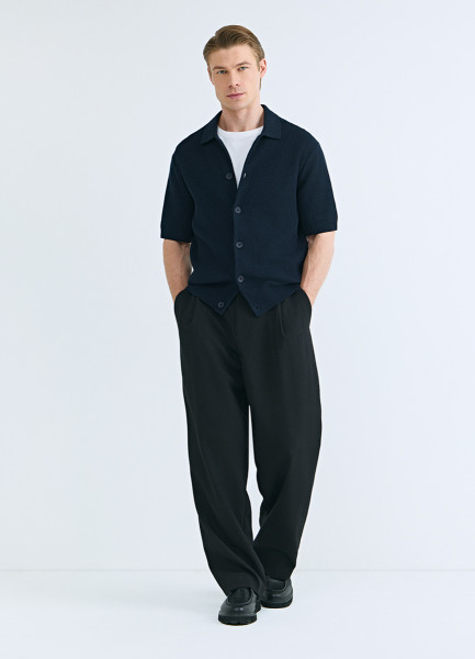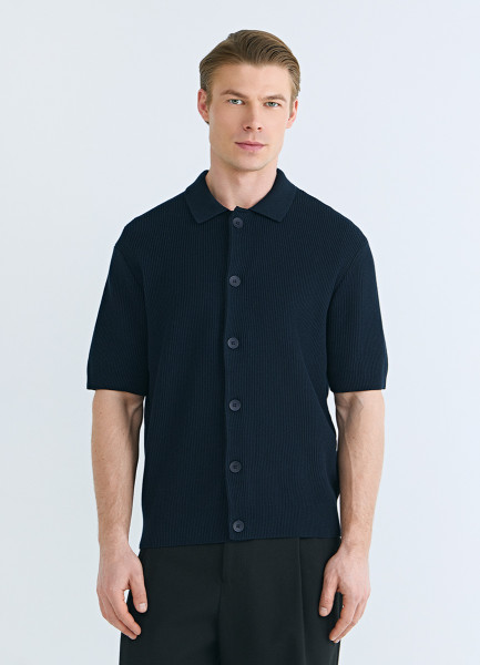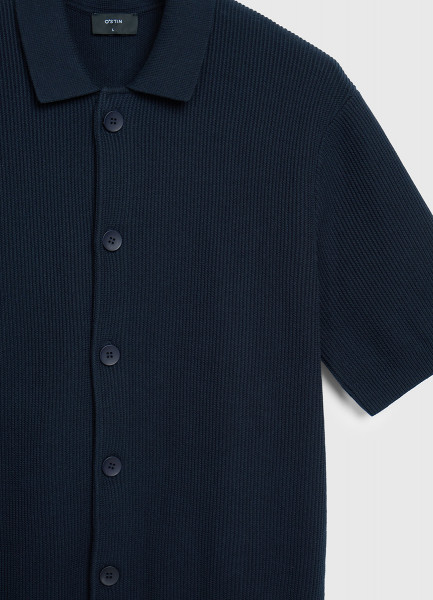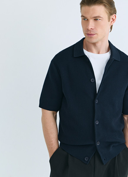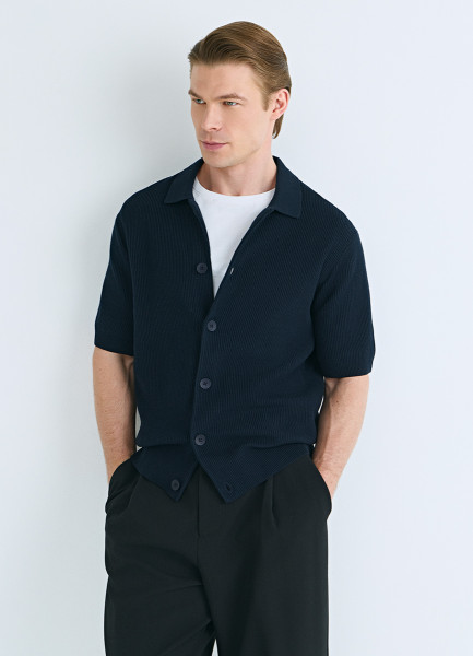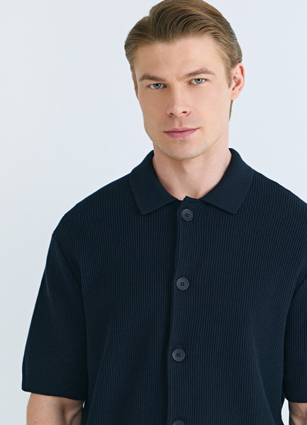 Кардиган из текстурной ткани с коротким рукавом, Синий