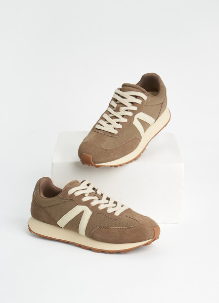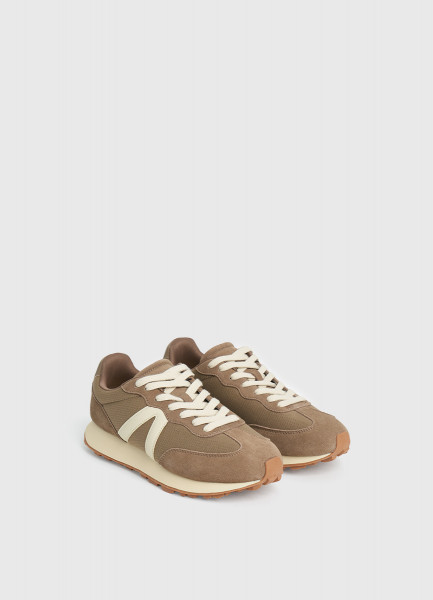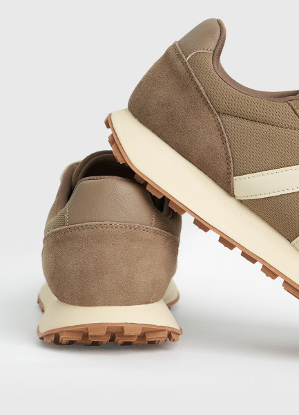 Комбинированные кроссовки из натуральной замши, Бежевый