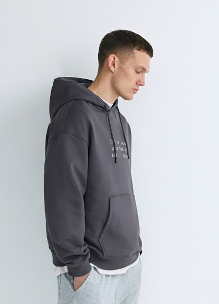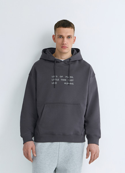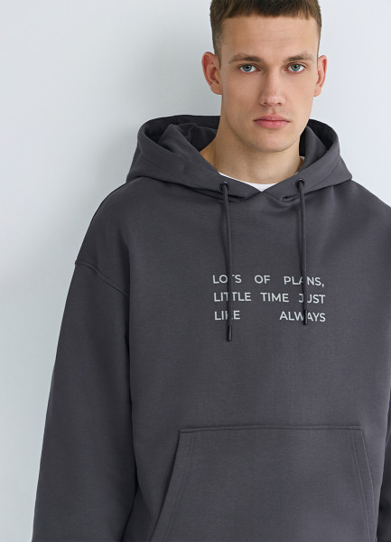Худи с текстовым принтом, Серый
