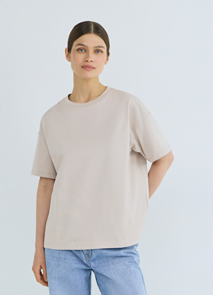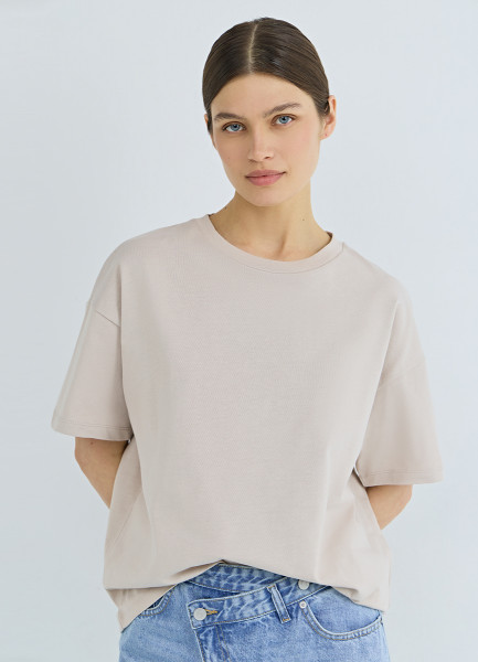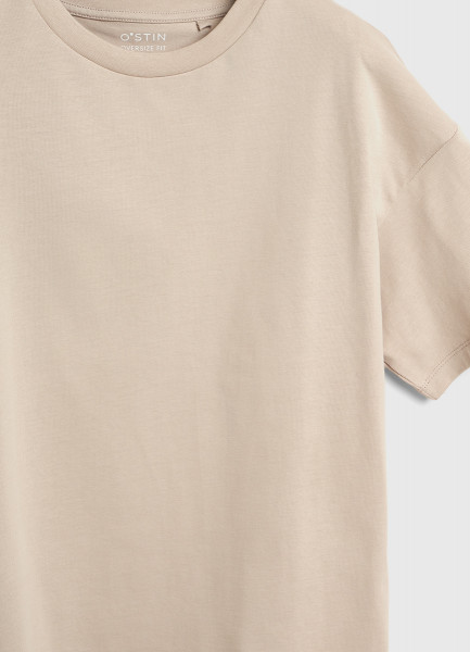 Футболка оверсайз из плотного хлопка, Бежевый