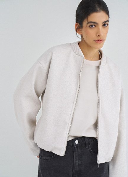 Бомбер из пальтовой ткани, Бежевый