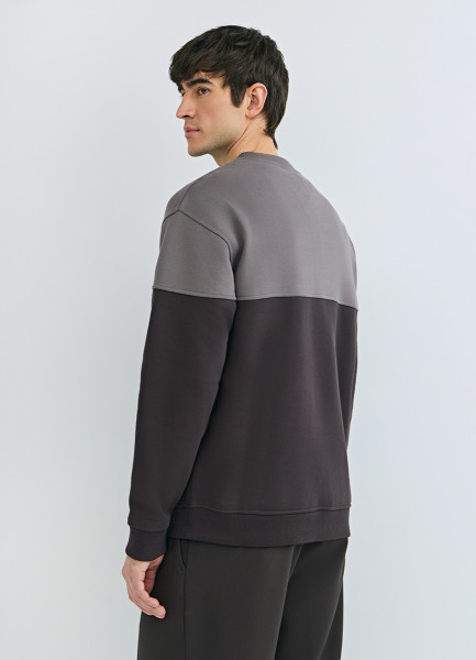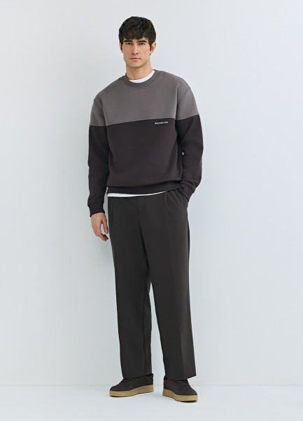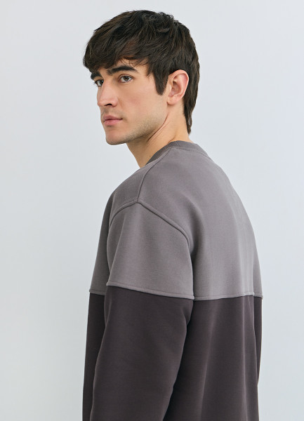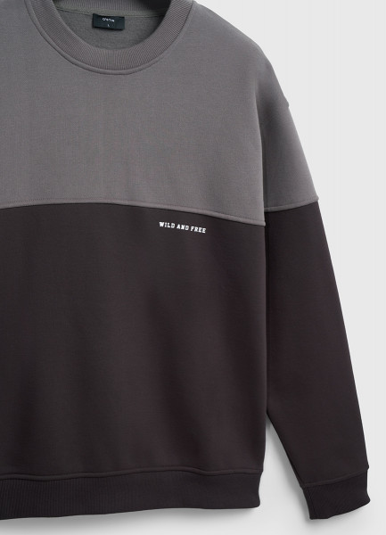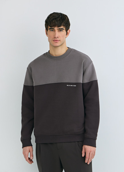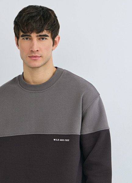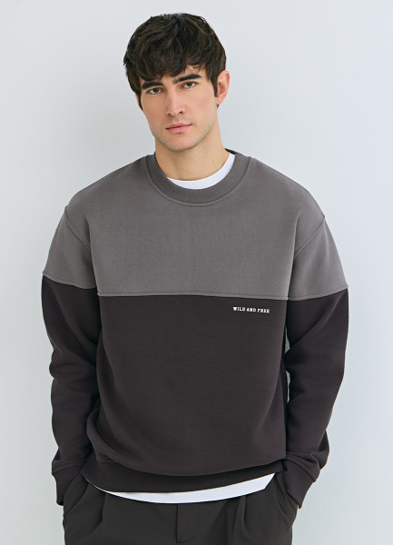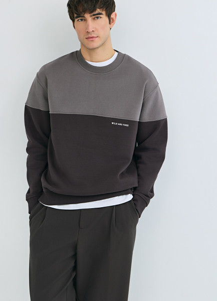 Свитшот колор-блок с надписью, Коричневый