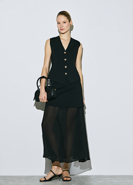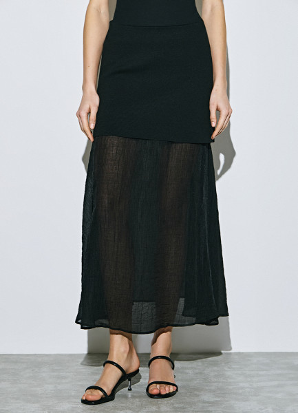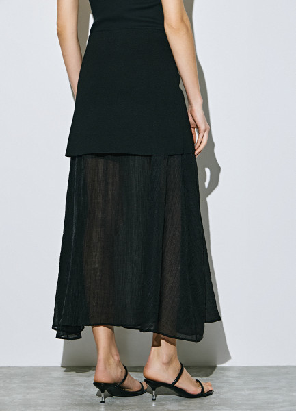 Двуслойная юбка с полупрозрачным подолом, Черный