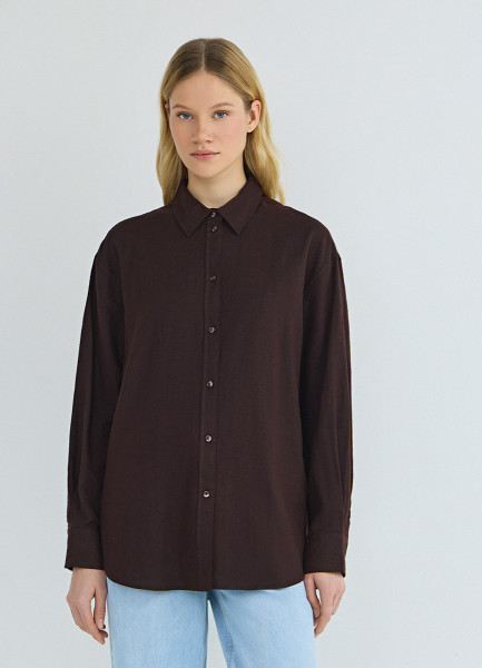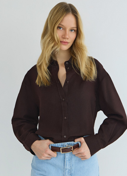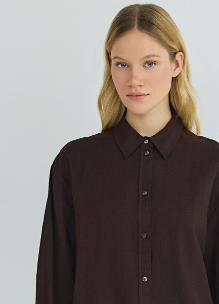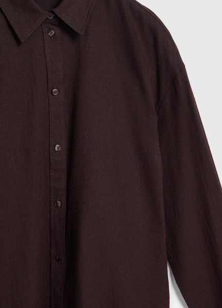 Рубашка с длинным рукавом из смесового льна, Коричневый