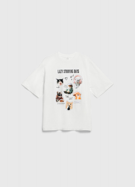 Футболка из плотного хлопка с текстовым принтом, Белый