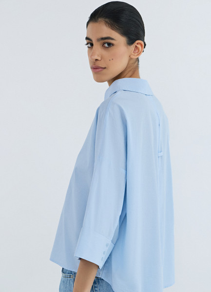 Рубашка в полоску с рукавом 3/4, Голубой