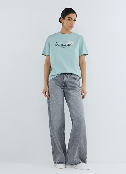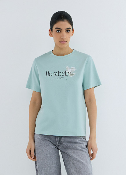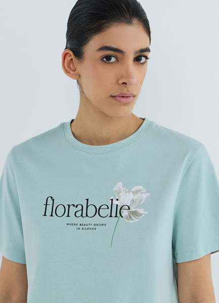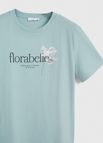 Футболка с цветочным принтом, Зеленый