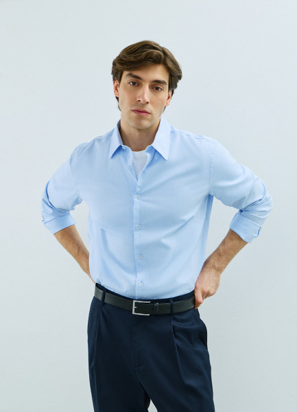 Рубашка из структурной ткани, Голубой