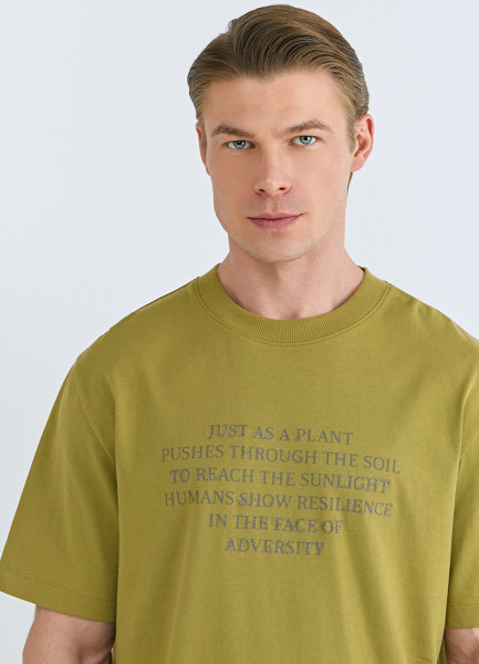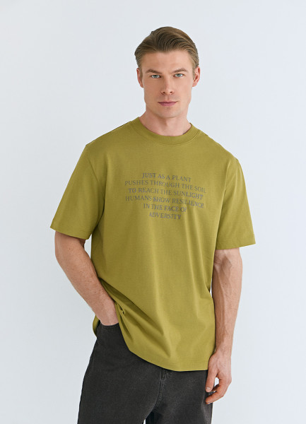 Футболка с круглым вырезом изо льна и хлопка, Оранжевый